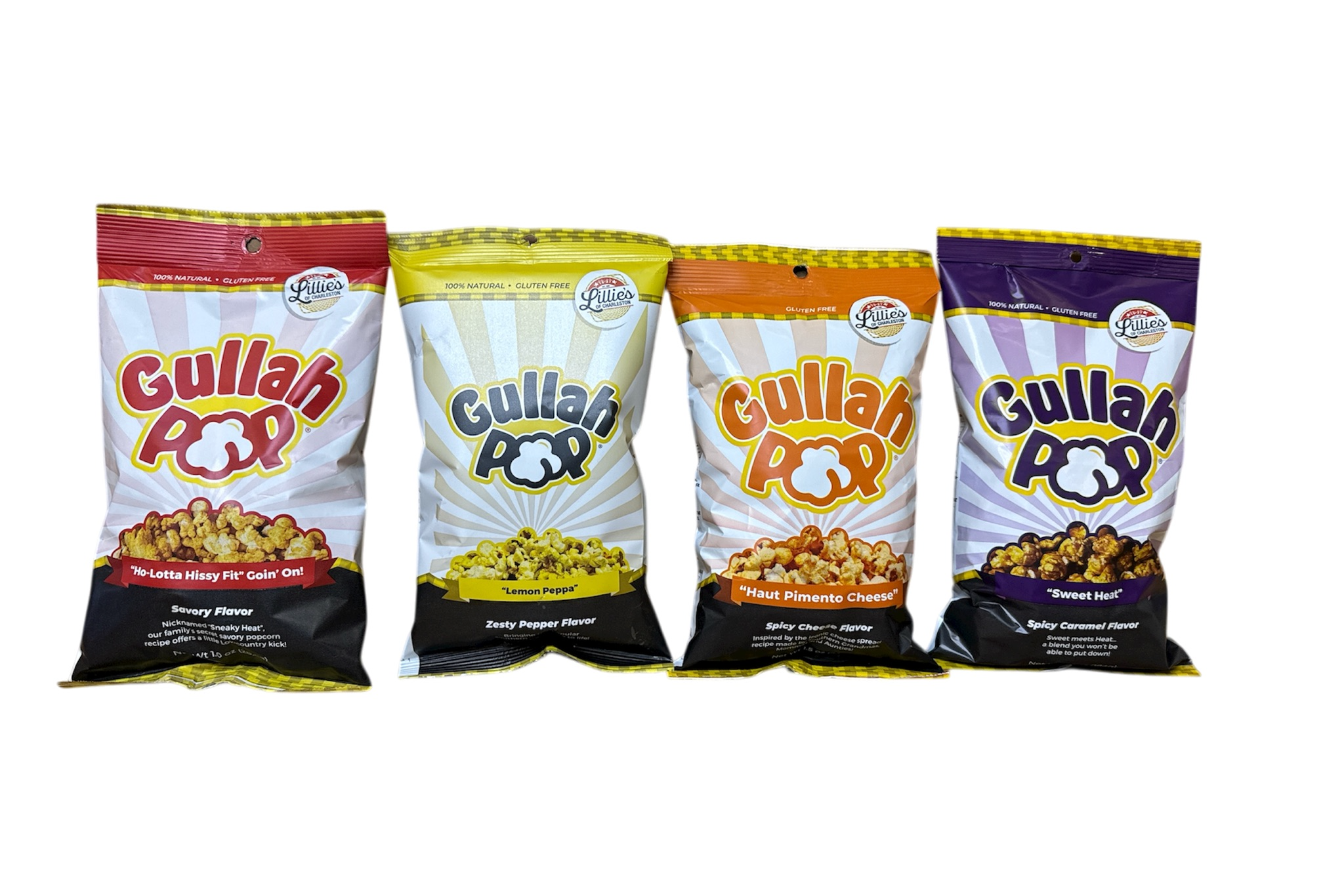 This non-GMO popcorn is coated in our 100% natural seasoning blends to create a unique and irresistible flavor explosion that'll leave you wanting more. Our popcorns come in 4 delicious varieties: Ho-Lotta + Hissy Fit for a spicy kick, Lemon Peppa for a zesty twist, Haut Pimento Cheese for some cheesy goodness and Sweet Heat for that spicy caramel flavored kick!
